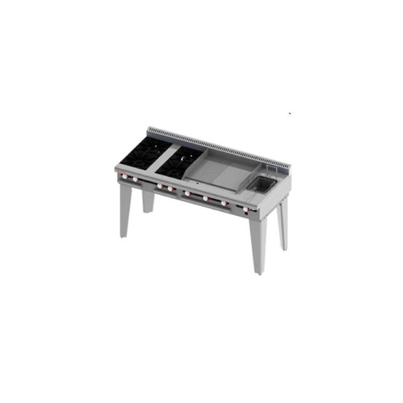 • Plancha y asador con placa de cold rolled de 1/2″ una sección lisa y una sección ranurada.