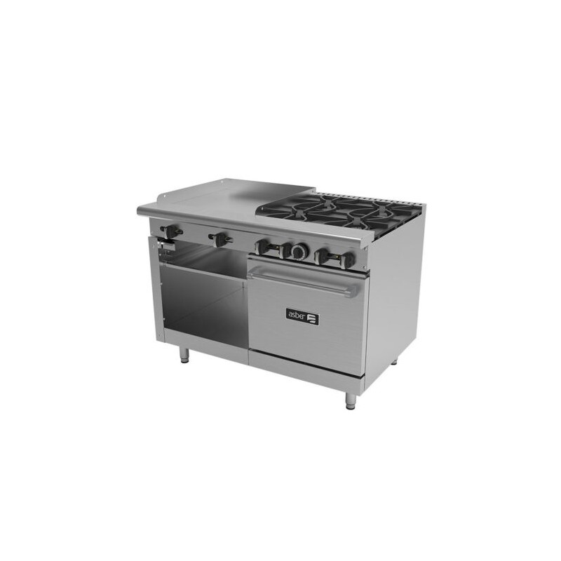 • Potentes quemadores “Tipo Flauta” de última generación y de alta capacidad, 16.000 BTU/Hora cada uno, colocados cada 12” para una óptima distribución de calor.
